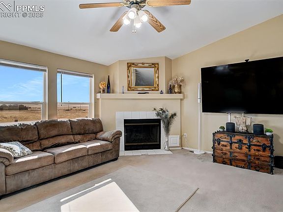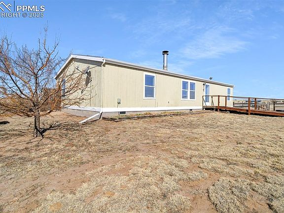 Escape to wide-open spaces and breathtaking mountain views with this charming property! Nestled on a sprawling 35-acre parcel, this 1554 sq ft manufactured home, built in 2000, offers the perfect blend of comfort and rural tranquility. Forget restrictive HOAs and covenants – here, you have the freedom to live on your own terms. Inside, discover a spacious and inviting open floorplan, accentuated by vaulted ceilings that create an airy ambiance. Three generously sized bedrooms, each boasting walk-in closets, provide ample storage and privacy. The primary suite features a full attached bathroom, while a second full bathroom serves the remaining bedrooms and guests. The heart of the home is the kitchen, complete with a convenient breakfast bar, a massive pantry for all your storage needs, and a picture-perfect view of Pikes Peak from the kitchen window. All kitchen appliances are included, along with a washer/dryer and two mounted TVs, making moving in a breeze. Enjoy the comfort of newer central air conditioning during the summer months, and cozy up to the wood-burning fireplace on chilly evenings. This property is perfectly set up for rural living. Recent updates include electrical upgrades, ensuring peace of mind. Outside, a utility storage shed provides space for tools and equipment. The land is fenced and cross-fenced, with a loafing shed, making it ideal for horses and other livestock. A fenced front yard is perfect for small dogs. Enjoy the benefits of a domestic well for your water needs. Landscaping adds to the charm, with chokecherry trees, plum trees, and goji berry bushes dotting the landscape. Located on a peaceful dead-end road, you'll enjoy privacy and serenity, yet you're only a convenient 30-minute drive from the amenities of Colorado Springs. Don't miss this opportunity to own your slice of Colorado paradise!