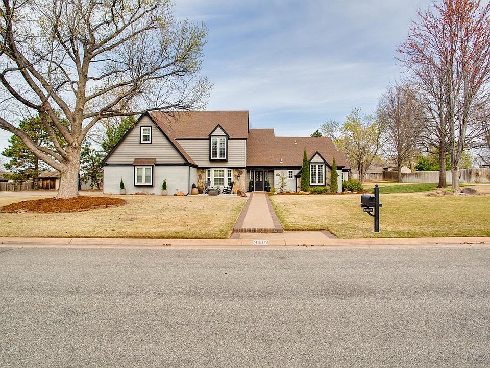 Nestled within the serene Willow West Addition, this captivating residence effortlessly captures attention from the moment one arrives. Boasting a sprawling, meticulously landscaped yard adorned with various outdoor amenities and sprinkler system ensuring perpetual verdant charm. From the charming swing set amidst the backyard to the tranquil garden oasis, and the inviting allure of the inground pool, firepit, pergola, and expansive patio areas—this home epitomizes outdoor living at its finest. Step inside to discover a luminous interior bathed in natural light, offering generously proportioned rooms ideal for both relaxation and entertainment. The main level showcases a formal dining area alongside a cozy breakfast nook complete with a built-in hutch. The kitchen exudes modern elegance with updated granite countertops, tile backsplash, an island, and stainless steel appliances including double ovens. Retreat to the spacious main-level bedroom retreat boasting an ensuite bath and patio doors opening onto the idyllic back patio and pool area. Additionally, a study adorned with exquisite wooden bookshelves awaits. Ascend to the upper level, where three bedrooms await—two sharing a Jack and Jill bathroom, while another enjoys the convenience of an ensuite. Completing the upper level is a living/rec room offering versatile space for relaxation or play. This abode is thoughtfully rounded out with a two-car garage furnished with a workbench and ample storage, alongside the added peace of mind provided by a storm shelter.