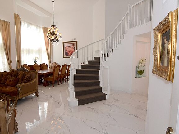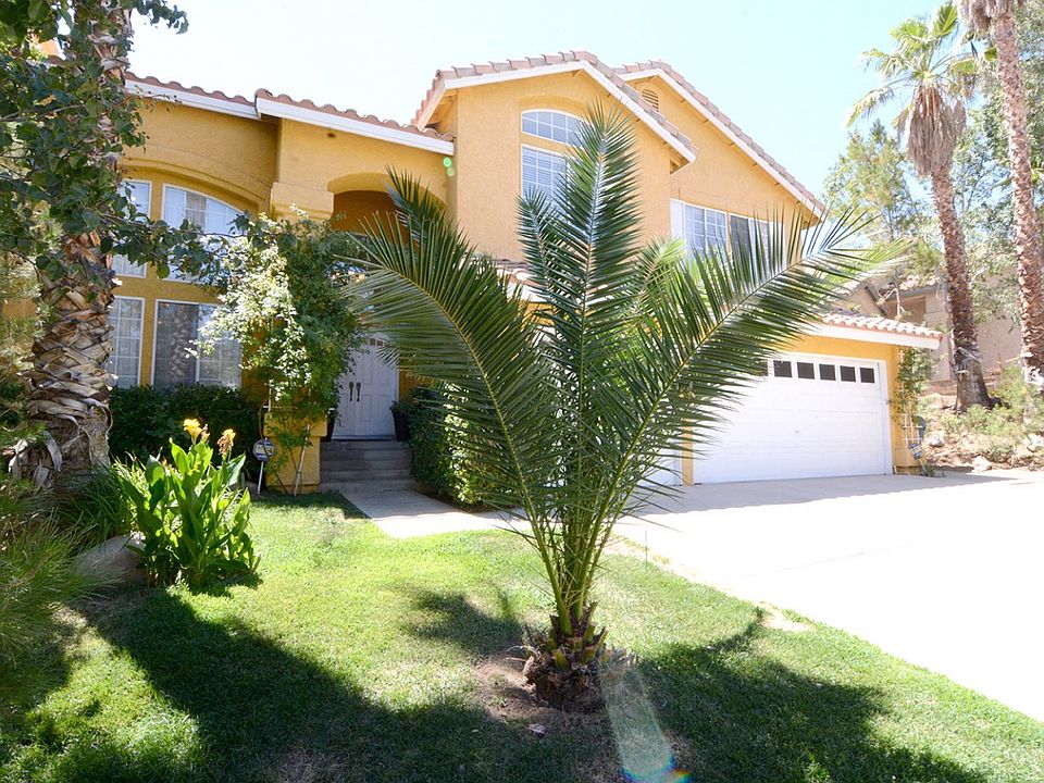 Beautiful 5-bedroom 3-bath home for sale in Palmdale! Picturesque front entrance of this home with palm trees and a well-maintained lawn. Tile flooring through-out the first floor with a living room complete with a fireplace, wall niches and high-ceilings! Gourmet kitchen with stainless-steel appliances, large center island for bar stool seating, ample cabinet space, recessed lighting and even a wet bar! Step down into the cozy family room with a fireplace and sliding doors that lead out to the back. Double door entrance into the master retreat under a vaulted ceiling with fireplace, large walk-in closet with some built-in shelves, a private bathroom equipped with a jetted tub! The backyard is landscaped with palm trees and plants, a covered patio area and a large pool and spa!