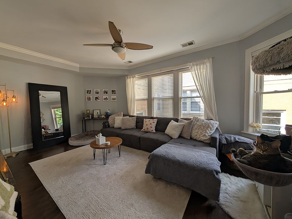 Renovated top floor 1 bed in the heart of Roscoe Village! Pet friendly, in unit laundry, dishwasher, stainless steel appliances, separate dining area, 2025 rehabbed bathroom, lots of natural light and spacious rooms. Walking distance to restaurants, nightlife, Jewel, Mariano's, dry cleaners, and easy street parking.