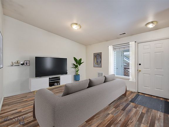 Bright and inviting describes this top-floor condo in the Tradewinds Condominiums, offering a fantastic opportunity to live or invest in one of Bozeman’s most convenient locations. This exceptionally clean 2-bedroom, 1-bathroom condo features an open floor plan with updated flooring throughout (no carpet!) A spacious covered deck adds ideal space that's perfect for relaxing or entertaining. Enjoy the abundant natural light, efficient layout, and a central location close to shopping, restaurants, trails, and MSU. The condo includes two dedicated parking spaces, offering rare convenience for this area. Whether you’re looking for a low-maintenance home or a solid rental investment, this Tradewinds condo delivers location, livability, and value all-in-one.