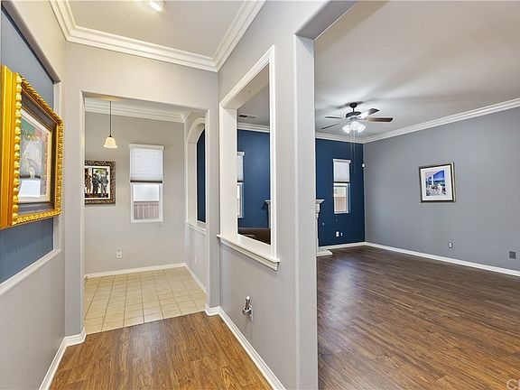 Gorgeous single level home offer 2,563 sq ft, 4 bedrooms, 3 bedrooms, 3 car tandem, lot size 7,405. The property offers a formal dining room, living room with a fireplace, family room with a fireplace, a front bedroom can be utilized as an office. In addition, the property offers a kitchen, bar stools seating area, granite counter tops, butler's pantry, and separate laundry room. Some of the special features include crown molding, high ceilings, ceiling fans, whole house fan, luxury vinyl flooring, large master bedroom suite includes a spacious master bathroom with a separate soaking tub, walk in shower, dual sinks and a large walk in closet. Backyard has artificial grass, BBQ gas line, alumiwood patio cover, and an extra wide rear door. Solar City Solar System is leased and buyer shall transfer. Temecula's award winning Great Oak High School, Pechanga Casino Resort, wineries, golf courses, and close to several parks.