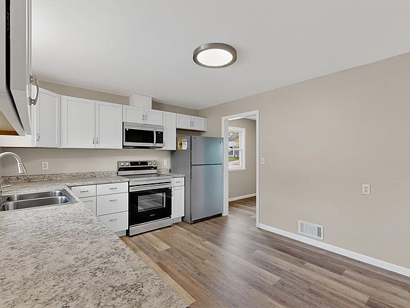 Enjoy cooking and entertaining in the **brand-new kitchen**, complete with new cabinets, countertops, sink, and stainless steel appliances. The bathroom has been fully updated with stylish tile flooring, backsplash, new vanity, and sinks. Fresh paint, trim, lighting, and plumbing fixtures make every room feel brand new.