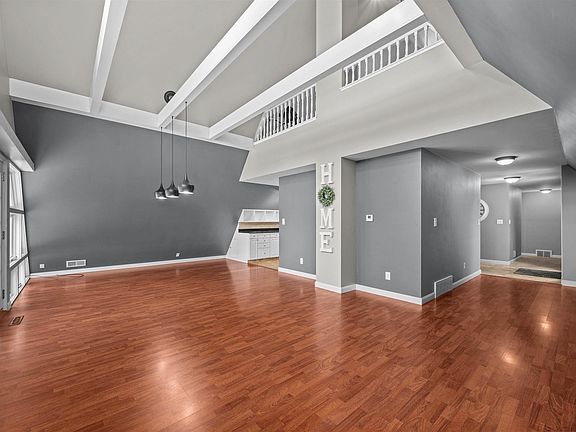 Iconic A-Frame Home in Desirable Homewood Edition, Moline, IL - great location close to schools, shopping and I-74/John Deere Rd. NEW CARPET 3/20/25, 4-bed, 3-bath deep 27' x 22' heated garage offers ample space for vehicles, storage or hobby area. Home sits on a great nearly acre lot fully fenced in with mature oak trees. 3,500+ sq ft on 3 levels, this architectural gem offers both space and character great for entertaining guests. Open-concept living and dining area featuring soaring vaulted ceilings, and a 25-ft wall of windows that flood the space with natural light. The main floor flows nicely through French doors to an expansive 35' x 17' elevated deck, perfect for entertaining, and enjoying the tranquil canopy of 80' oak trees that surround the spacious yard. A Lovewell copperwood privacy fence encompasses the area for added seclusion. The heart of the home is a highly functional and stylish kitchen with ceramic tile flooring and travertine backsplash that boasts stainless steel electric appliances, including dual refrigerators, oven/stove, microwave, and dishwasher; all appliances stay! Lower level provides a versatile living, work, and rec space with huge laundry room, French doors walkout to a patio potential hot tub area/backyard, offering tons of options for relaxation and leisure. Other features include; multiple built ins through out, all weather storage shed, asphalt black roof, Carrier central air conditioning, new hot H20 heater, lovely landscaping.