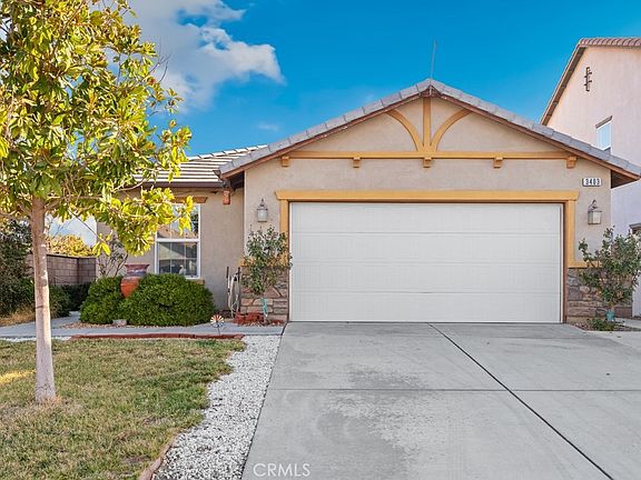 Move in ready 4 bed, 2 bath spacious home with Owned Solar Panels sitting on a corner lot! The interior offers an open floorplan with recessed lights, and finished granite window sills. The kitchen features upgraded granite countertops with a center island, beautiful tile backsplash, and crown molding. The kitchen overlooks the dining area and living room which has smart lights featuring app controlled color mood lighting - great for parties or dancing! The huge primary suite sits on the opposite side of the home away from the 3 secondary bedrooms and features the ideal ensuite with dual sink vanity, soaking tub, and seperate shower. There is also a full-size hall bathroom for the 3 secondary bedrooms which each have ceilings fans, and a laundry room completes the interior of the home. Enjoy the private backyard with new vinyl fencing, a covered patio, a built-in BBQ bar with utility sink and seating - this is the perfect space for hosting guests! Additionally this property has a fully automated irrigation system, and there are mature fruit trees on the side yard. This home also has an attached 2-Car garage with epoxy floors, built-in cabinets, a granite counter, and there is an included water softener/filtration system! Conveniently located near schools, shopping, dining, and more!