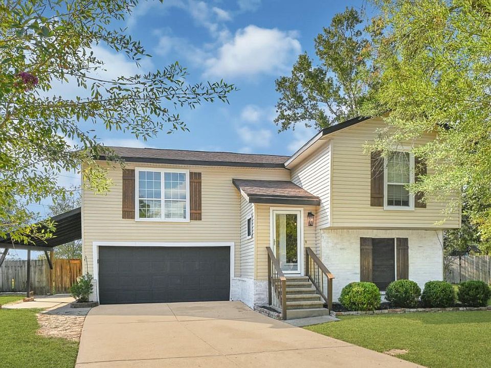 Situated on one of the largest lots in the neighborhood (.40 acre / 17,600 sq ft), this home offers space, comfort, and charm at the end of a quiet cul-de-sac. Beautifully maintained, 3/2, split-level combines a warm, welcoming layout with modern updates. Step inside to enjoy rich wood flooring, fresh neutral finishes, and abundant natural light throughout the open-concept living areas. The updated kitchen features stainless steel appliances, ample counter space, and flows seamlessly into the dining and family rooms. The primary suite offers a peaceful retreat, while secondary bedrooms provide flexibility for family, guests, or a home office. The oversized lot provides room for relaxation or backyard gatherings. Includes a covered RV/carport area for RV, boat, or extra vehicles, plus a 2-car attached garage. Located minutes from Lake Houston, FM 2100, schools, and shopping, this home balances peaceful living with everyday convenience.