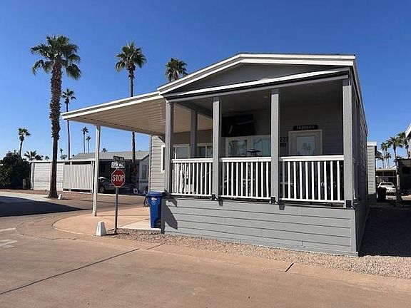 Gorgeous El Paso Model on A Corner Lot! Large Porch, Power Roll-Up Blinds, Wood Laminate Floors, Big Open Kitchen, Smooth Top Stove, Dishwasher, Built In Microwave, Spacious Breakfast Nook, Tall Ceilings, Large Arizona Room W/ 2nd Half Bathroom and Stacked Washer/Dryer, King Size Bedroom, Shower W/ Glass Doors, Updated Lighting & Ceiling Fans, Fully Furnished, Newer A/C (2022), WiFi Trim Lights