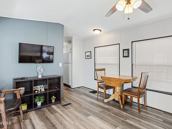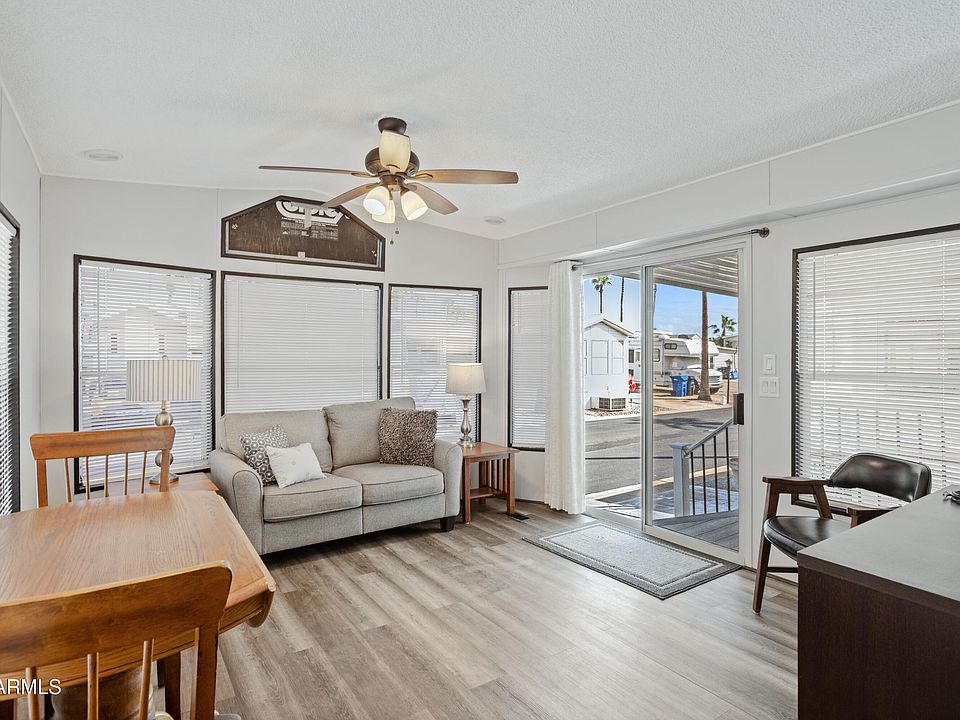 his is a real cute east facing park model in Good Life Resort, a premier 55+ Community!! Great location and very well maintained. Large Arizona Room with a full size washer and dryer. Large storage room. The interior is updated and It comes fully furnished and MOVE IN READY . Tennis, Pickle ball, Golf Club, Heated salt water pool and spa, fitness facility, Tennis, Pickle ball, Billiards, Lapidary/Silversmith, Sewing, Wood shop, Bingo, Dances parties & many more activities & amenities.