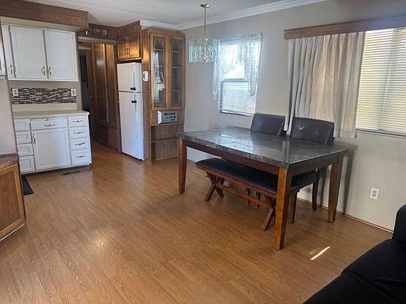 NEWLY LISTED!! Open Floor Plan ,Wood Laminate Floors, L-Shaped Kitchen, Built In Microwave, Updated Step-In Shower, Dual Medicine Cabinets, Queen Size Bedroom, Vaulted Ceilings, Extra Storage, Big & Bright Arizona Room, Storage Shed W/ Full Size Washer/Dryer, Newer AC, Large Back Patio, BBQ Grill Included. Lifestyle Fees Paid Until Sept 2025