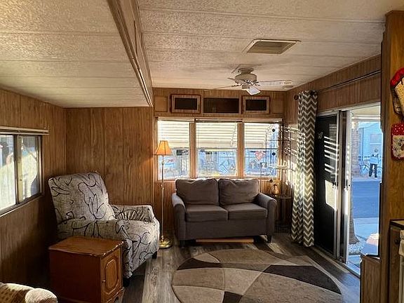 Lot Rent Paid Until June 2026! Move-in Ready! This park model is located in a 55+ Community in Mesa at the Good Life RV Resort. This home features a New HVAC System for the Central A/C & Heat with a transferable warranty. New Laminated Planked Wood Like Floors and a New Step-in Shower! There is a walk-in pantry, pull-out twin sofa and a large queen bed. The AZ Room has an indoor workroom/shed/storage area. There is a permanent roof, window awnings, a large back paved patio area. There is an epoxy carport with Pull Down Sunscreens and a ceiling fan for outdoor living. Some items pictured may not convey. Lot rent is noted on line as a monthly estimate and is due annually each year.