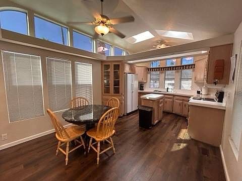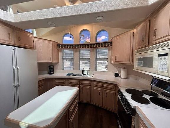 Lots of upgrades in this beautiful park model. Located On East Wall, Newer A/C (2020), Newer Roof, Vaulted Ceilings, Updated Laminate Flooring (2024), New Tiled Walk-in Shower (2024), Built in Microwave, Shed with Full Size Washer/Dryer, Glass Slider W/Screen To Back Patio, Large Back Patio W/Pavers, Lifestyle Fees Paid Until July 2026