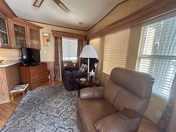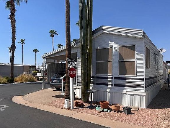 Great Home Great Location! Corner Lot! Arizona Room with Washer/Dryer, Darling Kitchen & Dining Area, Built in Microwave & Smooth Top stove, Plentiful Kitchen Cabinets, Large Queen Size Bedroom, Tons of Storage & Shelves, Jack-n-Jill Bathroom, Tub/Shower Combo, Wood Laminate Flooring, Ceiling Fans, Newer A/C, Epoxy Driveway, Lifestyle Fees Paid Until Nov 2025