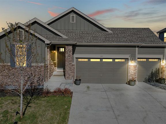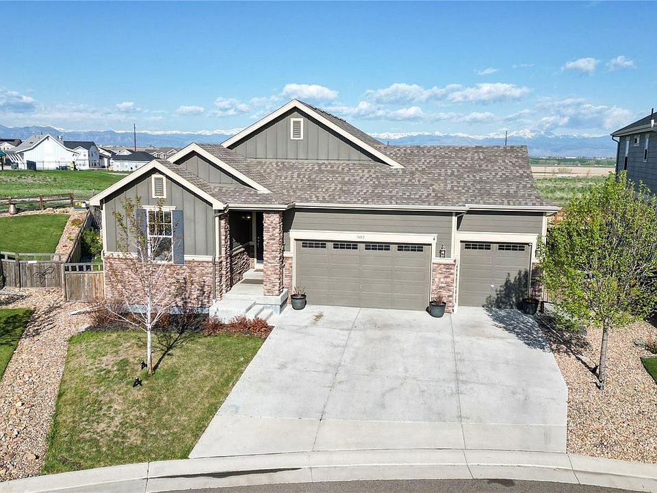 Amazing VIEWS of the Front Range!! 3 bedrm, 2 bath, Study, 3 car garage RANCH with awesome lot and Views!! Located in the very desirable neighborhood of Sweetgrass! You will fall in love with this property! Your eye will catch the view through the window the moment you open the front door and step inside! The beautiful luxury vinyl plank flooring runs throughout the main living areas in the house. The Quartz counter tops, stainless steel appliances, gas range and huge island make this a chefs dream. The dining space is lovely with special lighting. The large family room with a gas fireplace and windows with breath taking views finish the main living area. The large primary bedroom also has a door to the patio and a window to enjoy your mountain views, and a very large primary bathroom with a walk-in closet. There are two more bedrooms, and a main floor full bath. Lastly a study with French doors and a main floor laundry rm. This RANCH floorplan has everything you need! And, don't forget the full unfinished basement! The backyard has many garden boxes, a dog run and a covered patio to sit and enjoy the Views! This home is special! Over $100,000 in upgrades and improvements -Structural upgrades $49,050, Lot Premium $15,000, Fence/Sod/Rock/Sprinkler $10,095, Radon Mitigation $ 1,190, Flooring $14,000, Wood look accent walls $1,000, Garage finish $4,500, Window Well Coverings $3500, Upgraded A/C $4000!! Hurry it wont last!