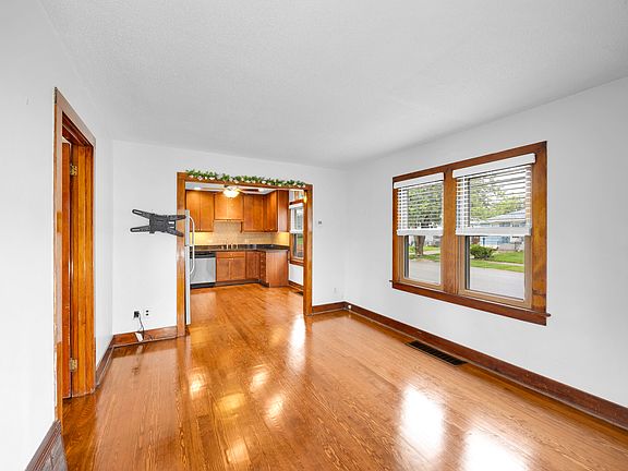 This Dollhouse is just waiting for you to move right in! Enter through the enclosed front porch with newer PVC handrails and newer vinyl flooring into this open concept Ranch home. Updated kitchen features granate counters, 42" maple cabinets, ceramic backsplash, under cabinet accent lighting and stainless steel/black appliances which are included. Full Bathroom Updated in 2018 featuring new vanity and luxury ceramic floor. Main floor features refinished Hardwood floors, new blinds on all windows and interior freshly painted-Aug. 25. Stanley Steamers vent and dry vent cleaning plus sanitized in 2025. Basement includes laundry room (Washer & Dryer-2018 & included), Bathroom with Shower and Family Room with dry bar. Interior Draintile-2008. Roof (tearoff) on House and garage Oct '24. New gutters with oversized downspouts. Furnace-2011, Central Air-2013, H20 Htr-2019. New thermostat. TV Mounts will stay. Exterior features concrete side drive to 6' ft privacy fenced back yard (Drive gate newer) to 1.5 car garage (new garage door opener being installed). Enjoy your evenings on the newer concrete patio. Exterior also includes security lights. Too cute to pass up.