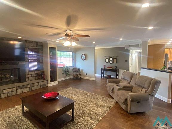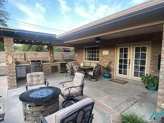 Stunning well maintained home in desirable NE neighborhood. The open and spacious floorplan is perfect for everyday living or entertaining. The home boasts a great room with a cozy gas log fireplace and LVP flooring throughout the main living area. Ample cabinet space with rollout trays and undercabinet lighting in the kitchen gives you plenty of prep area and storage. The large dining room has french doors to the outdoor kitchen. A generous primary suite has a walk-in closet plus an additional closet. Double shower and dual sinks make up the bath. French doors allow easy access to the hot tub. The outdoor kitchen with granite countertop, natural gas grill, and beverage fridge along with a firepit and hot tub makes for great relaxing and entertaining. The garage has a work area and a 1/2 bath. Home is equipped with circulating hot water for instant hot water, RO system, water softener, sprinkler system in front and backyard, and a block/brick fenced backyard.