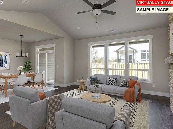 Start your tour at the host home! at Lot 58, 744 NE Trillium Dr, to view available homes in Dugan Estates! SPECIAL INCENTIVES WITH PREFERRED LENDER!The Latourell plan, located on Lot 76, is a stunning one-level home designed for exceptional living. Featuring 4 spacious bedrooms and 2 1/2 baths, this floorplan boasts a vaulted great room with a cozy fireplace, creating a welcoming atmosphere. The kitchen is a highlight with its large island, pantry, stainless steel appliances and more! Laminate flooring flows throughout the main living areas, adding to the home's appeal. The vaulted 4th bedroom includes a walk-in closet, providing ample storage space. Enjoy outdoor living with a huge covered patio and a fenced backyard. The primary suite offers a luxurious soaking tub, separate shower, double vanity, and a large walk-in closet. Please note, attached photos are for example purposes only.Hurry to choose your colors!