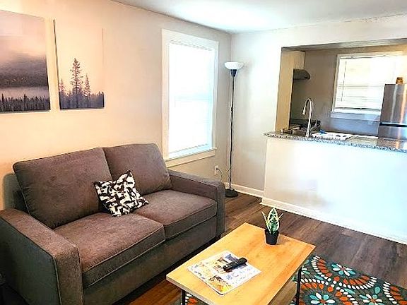 Welcome to this charming 1 bedroom, 1 bathroom house located in the heart of Oklahoma City, OK. This cozy home features a fully equipped kitchen with a refrigerator, electric stove, portable microwave, granite countertops, and dishware and cookware. The central heat and air ensure your comfort year-round, while the vinyl wood flooring adds a touch of elegance. The bedroom boasts a comfortable queen bed and a spacious walk-in closet for all your storage needs. Enjoy the convenience of free basic wifi and the peace of mind knowing that smoking and vaping are not allowed on the premises. Pet owners will appreciate the pet-friendly policy with a $150 nonrefundable pet fee per pet (limit 2) and a $20 monthly pet rent per pet (limit 2), with pet screening required. Don't miss out on this furnished short-term rental opportunity in a prime location!