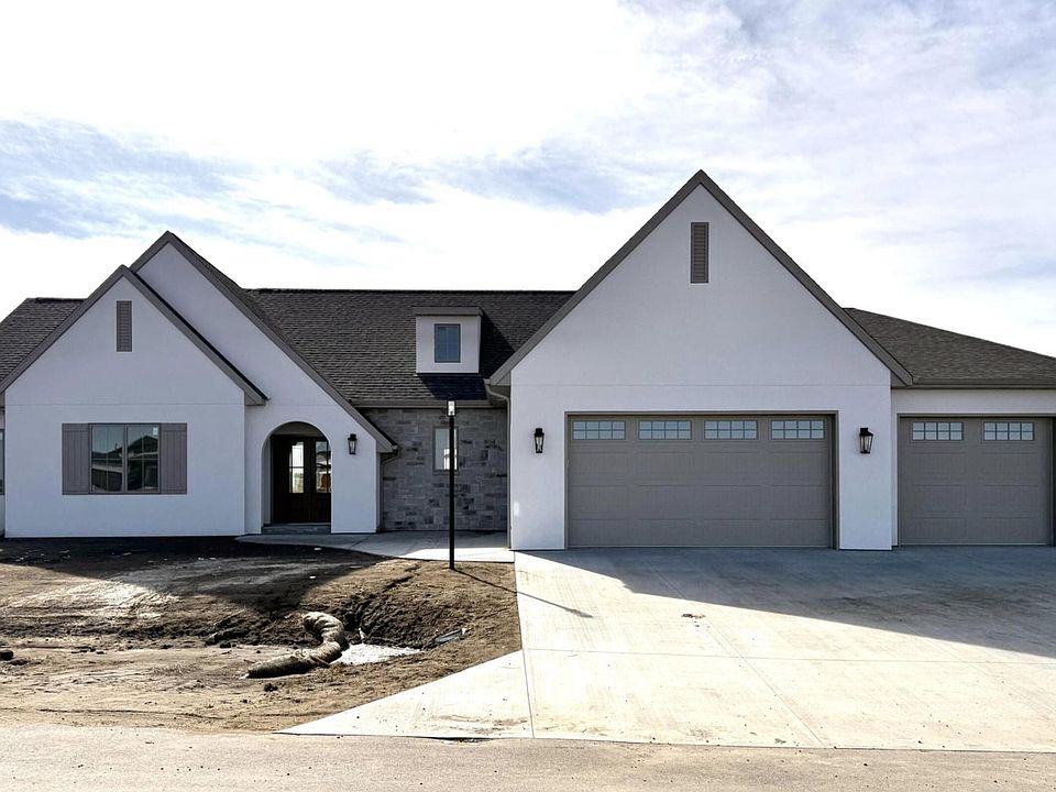 This new-construction ranch-style home has everything you need and more! Located in the Meadows at Hawktree development, you have access to the private community pool and clubhouse! The home itself boasts a large front entry with double doors, and an opening living room, kitchen, and dining room, The kitchen features a custom hood and cabinets, quartz countertops, tile backsplash and pot filler, and a large walk-in pantry. The main floor also features a beautiful primary ensuite with his and hers vanities, a custom-tiled shower, free-standing tub, and large walk-in closet. The living room is spacious with a beautiful natural stone, gas fireplace. Additionally, there is a spacious office, powder room, two more bedrooms, and a full bath. Professional photos to come when construction is completed. Listing agent related to seller.