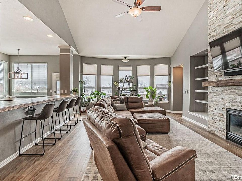 Welcome to this beautifully updated 2-story home in the highly sought-after Legacy Ridge community. As you step inside, you’re welcomed by a bright, expansive floor plan that seamlessly connects the living, dining, and kitchen areas—perfectly designed for both everyday living and entertaining. The vaulted ceilings, gas fireplace, and an abundance of natural light in the living room create a warm, open feel. The kitchen is a chefs dream featuring stainless steel appliances, natural gas cooktop, reclaimed wood bar top, a breakfast nook, and easy flow into both the main living spaces and a dedicated dining area, ideal for hosting gatherings. A large main floor office provides the perfect work-from-home space. The main floor primary suite is a private retreat, featuring a spacious bedroom, an updated luxurious 5-piece bath with dual vanities, soaking tub, walk-in shower, and a separate water closet, along with an oversized walk-in closet for ample storage. Upstairs, you’ll find 3 generously sized secondary bedrooms with plenty of natural light and closet space, and an updated full bath. Enjoy mountain views and the convenience of being right next to Legacy Ridge Golf Course, with HOA amenities including a pool, clubhouse, trails, and tennis courts. Updates include newer windows throughout most of the home, a newer roof, and a brand-new water heater. The finished walk out basement expands your living space with a large rec room, wet bar area, and additional storage—perfect for game nights, a home theater, or fitness setup.