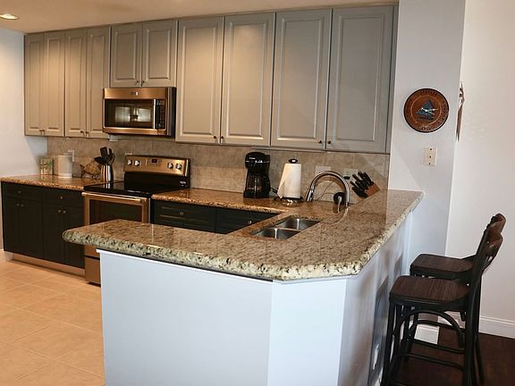 Primary bedroom has a king size bed with en suite bath, separate shower, his & her vanities. Second bedroom has king size bed and adjacent full bath with tub/shower. Granite countertops in a spacious kitchen, full size washer and dryer in the condo, underground/secure parking for one car and plenty of onsite, outside parking. New carpet in the bedrooms, new living room furniture and paint throughout, newly renovated kitchen