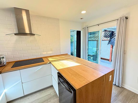Available NOW Live the coastal lifestyle in this bright and breezy downstairs duplex just moments from the sand. This updated 2-bedroom, 1-bathroom unit features a modern kitchen with sleek stainless steel appliances, stylish wood countertops, and ample cabinet space. Natural light pours into every room, creating a warm, inviting atmosphere. Enjoy your own private enclosed patio perfect for morning coffee, outdoor dining, or unwinding in the ocean air. The layout includes a convenient rear entrance through a sliding door, offering added privacy and easy access. Located just steps from the harbor, beaches, dining, and shopping, this home puts you in the heart of coastal living. Shared garage and driveway parking included for your convenience. Note: Kitchen includes a cooktop only (no oven). 1 for more details or to schedule a showing.