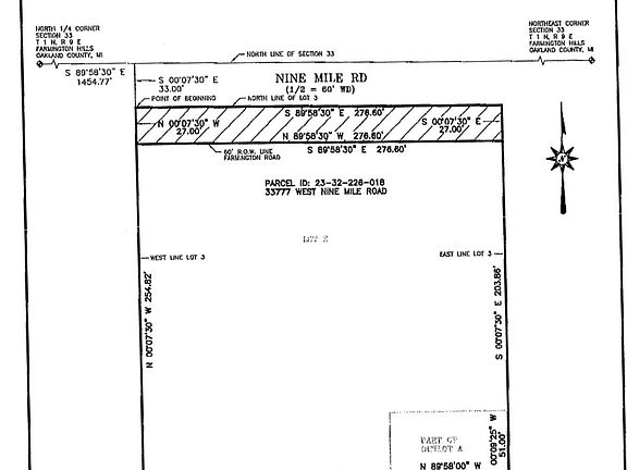 Welcome to 34037 Nine Mile Road, Farmington, MI 48335—a fantastic opportunity in a vibrant and convenient location! R-4 Residential Zoning allows for 8,500-square-foot lots with a minimum width of W/60. This property is nestled in the heart of Farmington, offering easy access to everything you need for comfortable living. The property itself boasts a spacious lot with mature trees, providing both privacy and curb appeal. Whether you’re looking to create your dream home, this address offers flexibility and potential. With easy access to I-275 and M-5, commuting to Novi, Livonia, surrounding cities, or downtown Detroit is quick and convenient. Don’t miss your chance to be part of this welcoming Farmington community, surrounded by excellent schools, parks, and a friendly neighborhood atmosphere.