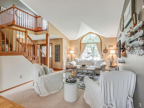 Stunning Spring Meadows 3 bedroom, 2.5 bath 2-story. The entrance into the home is beautiful with an open staircase that leads to a loft. Formal living and dining rooms are wonderful for entertaining. The heart of the home is the kitchen with granite counters, hickory flooring and stainless steel appliances that opens up to the family room with wood burning stone fireplace. A laundry and 1/2 bathroom are also on the main level. The upper includes the master suite with an arched window, vaulted ceiling and private bath with double vanity & new flooring & 2 nice sized bedrooms Enjoy the outdoors from huge deck that overlooks the beautiful yard adjacent to a pond. Several updates include: Roof in 2014, Furnace in 2014, A/C in 2013, Exterior Stained in 2015 and some New Windows in 2013.