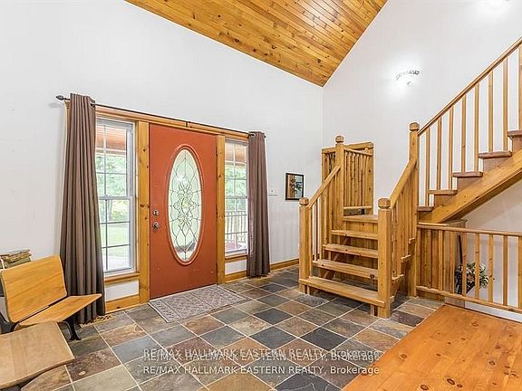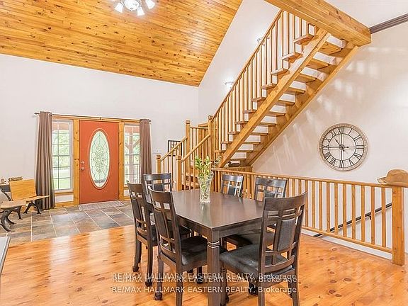 This executive home, built in 2005, features 3 bedrooms and 3 baths, plus a 1-bedroom, 1-bath in-law suite with a separate entrance. The main floor includes a primary bedroom with a 4-piece ensuite, a second bedroom, a 2-piece bath, a wood-burning fireplace, and an open concept living, dining, and kitchen area with hardwood floors. Enjoy the walkout to a covered deck with a hot tub. The second floor has a large bedroom with an ensuite and a loft overlooking the main floor. The basement offers a den, storage, and the in-law suite. The backyard includes a covered deck, outdoor fireplace, kitchen, pond, barn shed, and a playhouse or guest bunkie. This property backs onto a trail with biking access to Peterborough and Hastings, walking distance to Indian River. You have to see this home to appreciate what it truly offers.