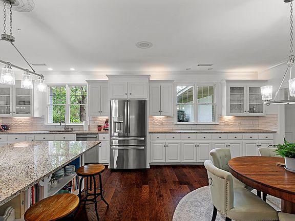 Welcome to your dream home in the heart of Dothan, Alabama! This stunning executive-style residence, situated on a sprawling 1.4-acre corner lot, offers the perfect blend of luxury and comfort. Completely remodeled, this U-shaped home surrounds a breathtaking gunite swimming pool, creating an oasis of relaxation and entertainment. Spanning over 7,000 square feet, this expansive home boasts six spacious bedrooms, six full bathrooms, and one half bath, ensuring ample space for family and guests. The thoughtfully designed layout includes two master suites on the main level, each with fully remodeled en-suite bathrooms. The main master suite includes an office with its own bathroom. The recently renovated kitchen is a chef's delight, featuring granite countertops, a large island, and a top-of-the-line Viking range. The beautifully thought out design seamlessly connects the kitchen to a grand dining room, cozy living room, inviting den, and a versatile library/game room. This home is an entertainer's paradise with three fireplaces, providing warmth and ambiance throughout the living spaces. The kid's den is centered around 2 additional bedrooms with en-suite baths and an upstairs area with a bedroom, bath, and a sauna room. Practical updates include a brand-new main HVAC unit, exterior paint in 2021, and a resurfaced pool with new decking completed in 2022. Car enthusiasts will appreciate the three-car attached carport and the separate four-car detached garage, offering abunda