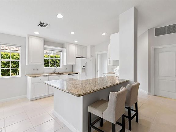 Welcome home to one of North Naples most popular communities, Island Walk! This open concept, attached villa has a expansive, extended screened lanai and a spectacular lake view. The kitchen has granite counter tops and there is no carpet in the villa at all. This unit has a two car attached garage and large laundry room. Also, a BRAND NEW AC and water heater! Island Walk is a gated community that has some of the most incredible amenities in the area. The clubhouse has both resort and lap pool, seven har tru tennis courts, four pickleball courts, large gym, restaurant (no food and beverage minimum), gas station, car wash and a busy social calendar! Island Walk has low HOA dues and no CDD!