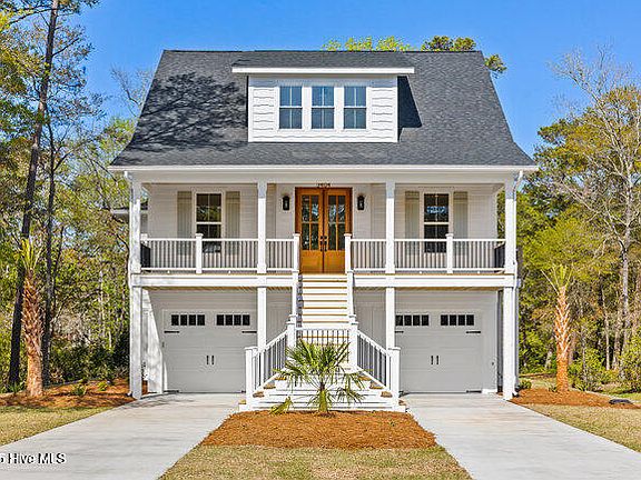Discover refined coastal living in this custom-built, raised Low Country home, perfectly positioned on over half an acre in the gated, amenity-rich community of Oyster Harbour. Tucked away in a private, wooded setting that backs to the marsh, this home offers the best of nature and luxury—just minutes from the shores of Holden Beach.