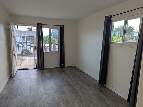 Just renovated 1 bedroom 1 bath unit on a duplex property. New paint, new luxury vinyl floors. Newer washer and dryer in unit. Gas cooking range. Lots of closet space. Cute private patio space with water and electric outlet. Street parking is easily available. Grass front yard with Palm trees.