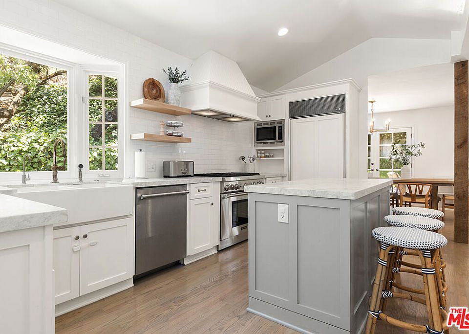 Absolutely charming traditional located on a quiet cul-de-sac off Mandeville in a captivating canyon setting. This 4 bedroom/2.5 bathroom single-level home has been beautifully remodeled with great attention to detail. Common rooms include a living room with vaulted beamed ceilings and a raised hearth brick fireplace, and a dining area with built-in bar. The kitchen is equipped with a gourmet center-island with Carrera marble countertops and a beautiful breakfast banquette with under bench storage, custom cabinetry, a Farmhouse sink with water filtration and top line appliances that include Sub Zero and Thermador. Primary bedroom includes custom built-in closets/storage and an extensively remodeled primary bathroom. Two additional bedrooms with a shared bathroom also include custom closets. The 4th bedroom is currently being used as an office. The house has great indoor/outdoor flow with French doors leading to the well-manicured backyard with new hardscape, play structure and grassy area. Additional upgrades include newer roof, whole home water filtration system, custom cabinetry and built-ins, as well as custom closets in the garage.