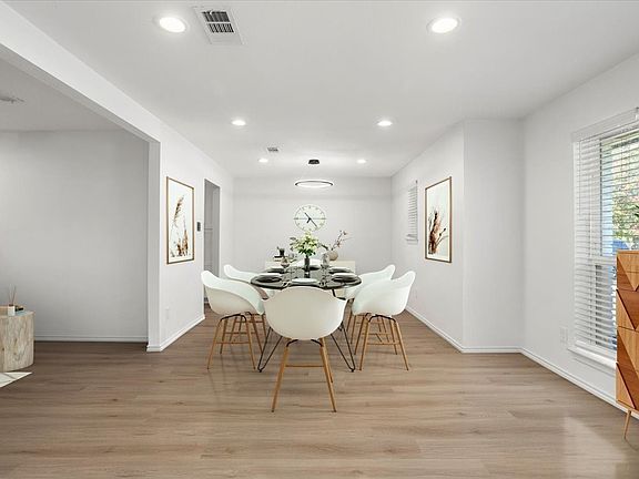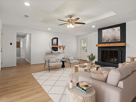 Perfectly situated on nearly a quarter-acre lot in desirable Pantego, this beautifully remodeled 4 bedroom, 2.5 bath home has been carefully updated and maintained, blending modern elegance with everyday comfort. The light-filled kitchen showcases stainless-steel appliances, sleek white cabinetry with black hardware, and a custom designer tile backsplash. New luxury vinyl plank flooring flows seamlessly throughout spacious living areas, including an inviting living room anchored by a dramatic floor-to-ceiling black brick fireplace with a custom mantle. The dining area offers effortless flow for both entertaining and daily living.