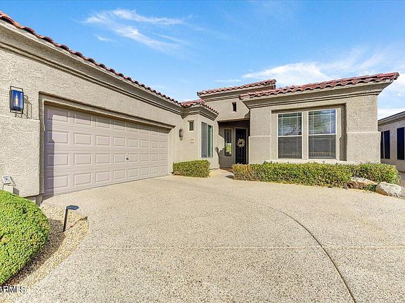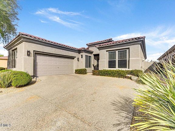 Step through the doors of the perfect Cave Creek lock-and-leave retreat or full-time residence situated on the golf course in the gated community of Dove Valley Ranch. This 3 bedroom 2 bathroom home offers an open floor plan with a wonderful sized living area, kitchen, primary, and two dining areas for entertaining. It features ceramic tile flooring, granite slab countertops, and plenty of natural light with walls of windows that capture picturesque views. The family room overlooks a travertine patio with low-maintenance desert landscaping, featuring a stunning pool and spill-over spa set in front of golf course and mountain views. The pool and spa can be heated, unlocking year-round enjoyment of the outdoor space and glowing Arizona sunsets. Additional highlights include built-in living room cabinetry, a two-car garage with space for storage and bikes, a Sonos surround sound enabled living room, reverse osmosis and water softener treatment systems. This community is in a great school district and is located close to shops and restaurants in the charming town of Cave Creek, and a short drive to Desert Ridge or DC Ranch. Don't miss this opportunity!