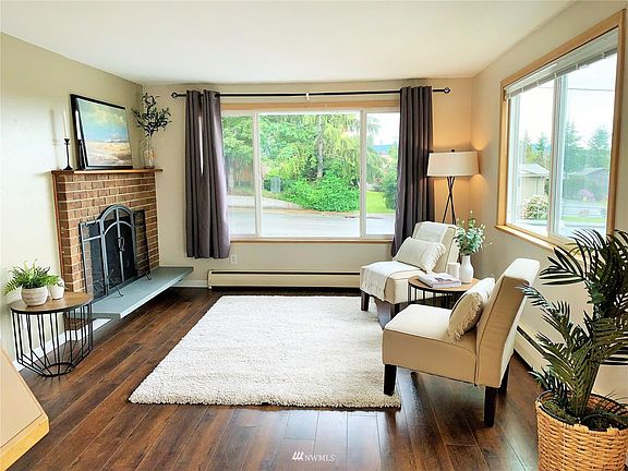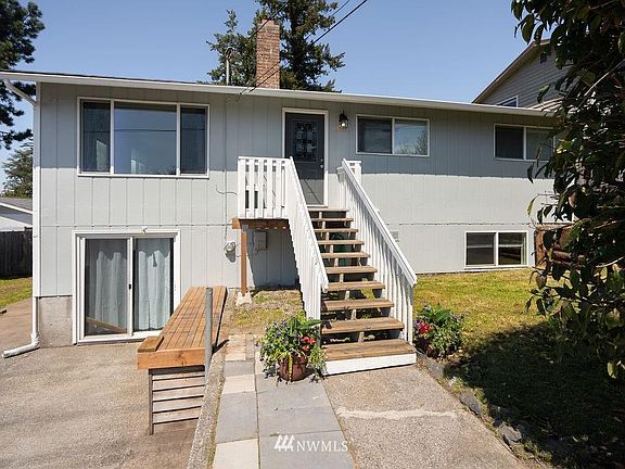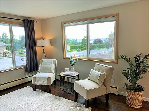 Enjoy the view and sunsets of Bellingham Bay and the city from this open floor plan home. This home just completed a makeover with new interior and exterior paint, refrigerator, newer roof, laminate wood plank flooring, and is move in ready. Enjoy the bright interior, and cozy up to the wood burning fireplace. The back yard deck off the kitchen is ideal for barbecuing and outdoor entertaining, with stairs down to the fully fenced in backyard. The lower family room could easily become a separate in-law suite, with two bedrooms, bath, and a level entrance sliding door off the driveway. Ideal location to Lake Whatcom, Whatcom Falls Park, Galbraith Mountain, Schools, downtown, and on the WTA bus lines. Previously rented at $2,500.00 a month.