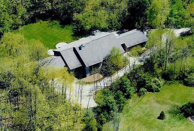 Stunning open soft contemporary with touches of the Southwest and the Orient. Total seclusion on 2 acres of woods. A wonderful mix of stone, wood, tile and slate. Sunken rooms with high ceilings and large windows. First floor master suite and two other bedrooms with a Jack and Jill bath. Huge island kitchen has spacious sitting and eating area with see-thru fireplace and wet bar. Kitchen and large screened porch open to a covered porch. Open lower level has a full bath and two finished rooms. Two double car garages, one used as a workshop (heated).