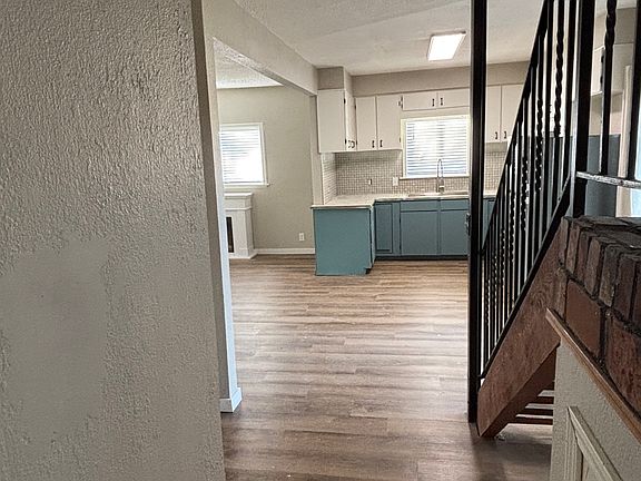 This is a huge, clean 3 bedroom 1 bath duplex unit with fenced yard on a quiet street. The home is just 2 houses away from Cooper Elementary school with no roads to cross. So it would be a great place for young kids. It has huge bedrooms, 2 are upstairs, one with a walk in closet and an additionally large master bedroom is on the main floor. The home is recently updated with fresh paint and LVP flooring and new faux wood blinds. The backyard is fenced in and the outside of the home is freshly painted. The front yard is large and sits way off the road. There is a washer/dryer included , located off the master bedroom. The home is heated with electric cadet and electric register heat. There is a cozy electric fireplace to curl up in front of on those cold winter nights!