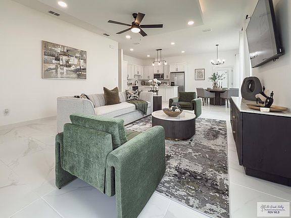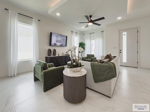 Located 3 minutes from expwy 83 in Weslaco is this NEW construction 4 Bed/ 2 Bath home from a top 200 builder! The Paris floor plan features 1,503 living sqft, features & craftsmanship that make this home a can't miss! Feel welcomed into the open living and dining area with plenty of natural light & 10 ft ceilings! The open concept kitchen includes a spacious island & all stainless steel kitchen appliances included with easy access to the covered patio in the back! Standard features include recessed lighting throughout, ceiling fans in all bedrooms, quartz countertops & beautiful black fixture throughout. All bedrooms sit to the left of the home with easy access to the living area or laundry/garage out front. With easy access to expwy 83 & stunning features, this new construction home is move in ready!