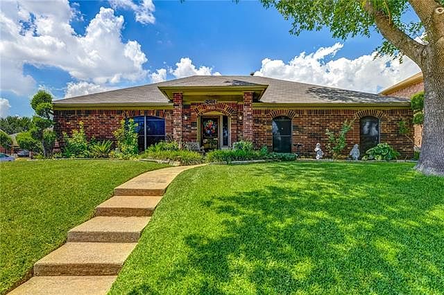We are in multiple offers - highest and best by Sat 8-31 at 5 pm - thank you. Welcome home to this impressive 1 story home in the heart of Rowlett - sits on generously sized corner lot. Inside youâll see a spacious, open floor plan that features a large living area with a vaulted & beamed ceiling and brick fireplace. The kitchen offers granite counters, tumbled backsplash, built in microwave, painted cabinets with hardware, and a breakfast nook. Master suite has gorgeous, updated en suite bath with jacuzzi tub, separate frameless glass shower, and dual vanities with granite counters. Backyard includes a covered patio and board on board stained 8 ft. fence - lots of room for relaxing family fun or entertainment.