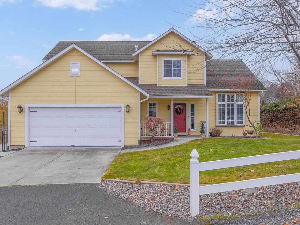 "That YELLOW house in the culdesac!" Complete with a white picket fence. 3 bedrooms and 2.5 bath. Bright kitchen with spectacular views. Family room with gas fireplace is off of the kitchen and breakfast nook. Living room is open to formal dining space that flows into the kitchen. Main floor half bath and laundry. Bedrooms on the upper level with grand master suite that includes dual sinks, tile shower, soaker tub, and walk in closet. Spacious yard with animal rights, back patio and fenced side patio. Garden area 2 car garage and 14x20 storage shed with it's own access. RV parking. Pasture currently has producing grape vines. Quiet neighborhood near Quailridge golf course.