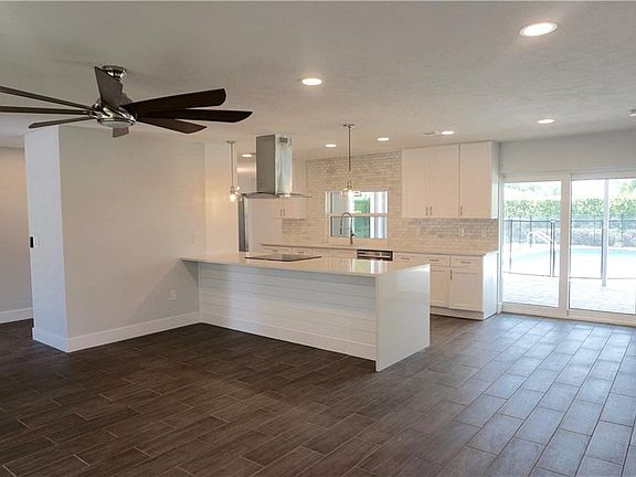 NEW! NEW! NEW! *** TOP OF THE LINE REMODEL, READY FOR IMMEDIATE OCCUPANCY ** This wonderful 3 bedroom, 2 bath is a show stopper boasting a brand new roof, new kitchen, hurricane impact rated windows, new electrical, new bathrooms, new flooring, new lighting, a refinished pool, new landscaping, paint.. and the list goes on.. The kitchen light and bright with sparkling quartz countertops, luxury stainless appliances, shaker cabinetry and large island entertaining space. Hand scraped wood looking tile floor runs throughout the entire home providing a low maintenance, low allergen, energy efficient environment. A new roof and impact resistant windows and sliders protect this home from weather and high utility bills, the insurance company may be appreciative :) The pavered lanai is new and overlooks the safety fenced pool, dressed in fresh marcite and waterline tile. Tropical landscaping, bright colored blooms and Florida palms surround the entire home. No stone has been left unturned here ** This property is a MUST SEE **
