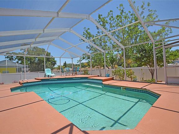 Beautiful poolFruit treesScreened-in lanaiBrick paver walking pathGarden planter areaSpacious primary bathroomSpacious fenced-in lot