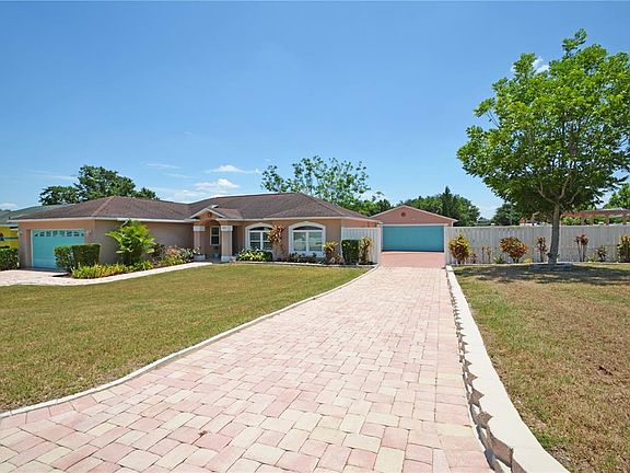 If you’ve wanted a beautiful pool home with a very well-kept and clean over 700 sq ft workshop, and a garden planter area, a few fruit trees, with plenty of space for two or four-legged ones to roam on a corner lot, welcome to your new home! This 3-bedroom, 2-bath, 4-car garage home has much to boast about. Skylights in the kitchen and living room bring natural light into the house, and the office/den has French doors that allow light to filter from the windows into the entry. Laminate and tile floors throughout, no carpet. The split-bedroom floor plan gives the primary bedroom privacy, away from the entry and both secondary bedrooms. The spacious primary bathroom has a walk-in shower with a new showerhead, a separate jetted tub, a private toilet room, and a walk-in closet. A shared bathroom is between the two secondary bedrooms, allowing for some privacy. The living and dining room overlook the pool and outdoor eating area. The separate two-car garage has an AC and is ready for its next hobbyist or cave dweller/she shedder. The spacious fenced-in lot with several gates allows for the extra garage, vegetable gardens, a pool with a brick paver walking path around the screened-in lanai, and a grassy area. The rolling hills of the Lakeland Highlands area and its location less than a mile to Banana Lake Park with jungle gyms, several picnic areas, trees for shade, wide open spaces, a fishing dock, and a boat launch make this a fantastic area for outdoor time. Grocery stores, restaurants with delicious food, retail stores, and a mall are all within a few miles of the home. Don’t miss out on this opportunity! New microwave and kitchen faucet. Newer roof and double-paned windows have been recently installed. Not in a flood zone.