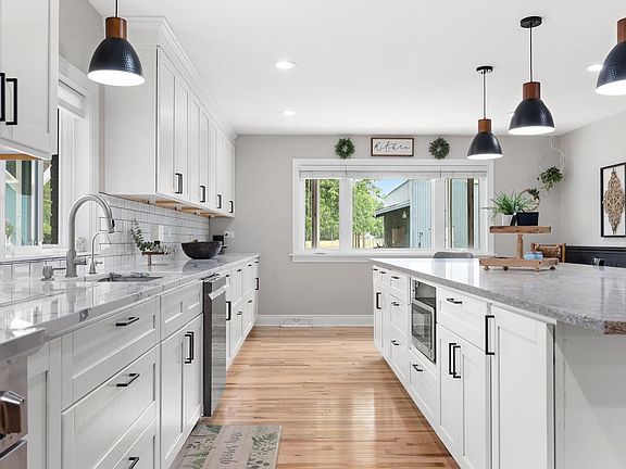 MOTIVATED SELLER...LOOKING AT ALL OFFERS! THIS 9 bedroom 5 bathroom all brick sprawling ranch home sits on 6.397 acres of land.This property provides ample space for you to roam 5 minutes from the downtown square. The property boasts a 35x50 barn with 3 horse stalls possibly for the equestrian enthusiast. The 2 garages can accommodate up to 9 cars including 2 drive-through doors on the detached garage. Once inside, you'll be greeted by a spacious open and inviting interior. The home offers a total of 6,000 SF of living space between the main & lower level.The main living area features an open floor plan, hickory hardwood flooring with a large gourmet kitchen that flows seamlessly into the dining and living areas. Main level includes 4 Bd 3 Bth & large laundry room. The kitchen boasts professional appliances,14ft island, quartz countertops, tons of cabinets, huge panty! The basement is 5 bd 2 bth & huge Rec. area's. THIS ENTIRE HOME HAS BEEN COMPLETELY RENOVATED FROM TOP TO BOTTOM!!