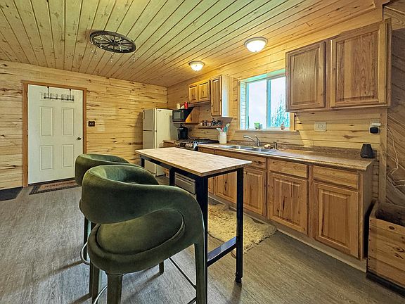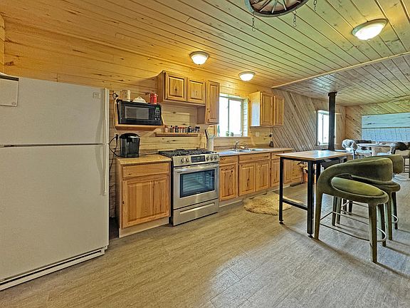 Country home on 2 1/2 acres just 1.5 miles south of Bagley! Home features 2 bedrooms, 1 bath, main floor laundry, in floor heat, a cozy wood stove, open kitchen and dining area, and large living room with lots of natural light! Includes a covered porch, lean to for wood storage, double attached garage and a 16'x24' garage/storage building.