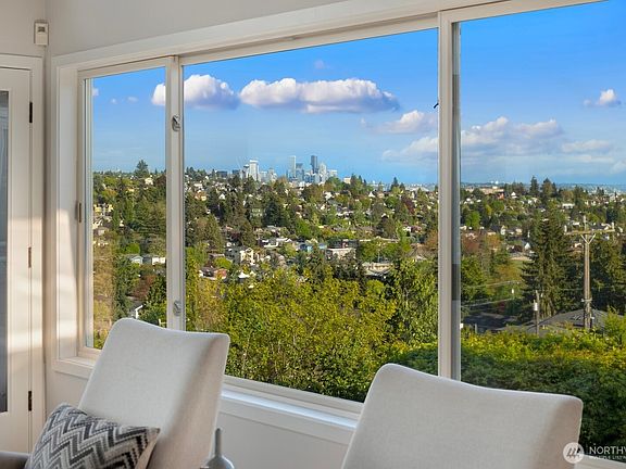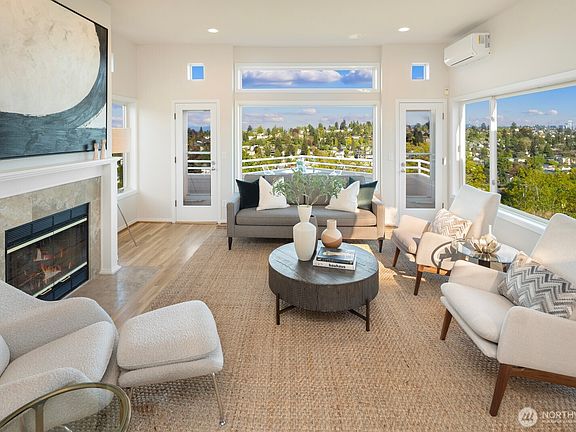 This stunning Magnolia home offers breathtaking views of Seattle, Puget Sound, and Mount Rainier. Tall ceilings and expansive windows fill the space with natural light and frame the views from nearly every room. Beautiful hardwood floors run throughout the main level, which includes a spacious primary suite with a private bath and walk-in closet. Downstairs features two additional bedrooms, a full bath, and a large family room that opens to a massive outdoor deck—perfect for gatherings, entertaining, or quiet moments in the sun. A rare blend of comfort, style, and unforgettable vistas.