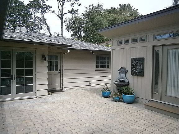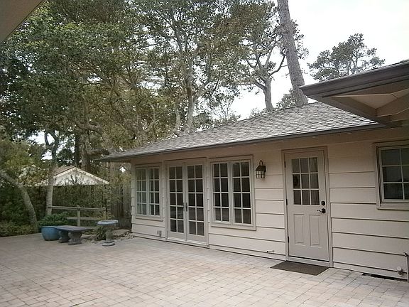 Charming 1,746 sq ft 3 bedrooms/3 bathrooms one-story cottage style house situated on a large gently sloping lot in one of Carmel’s most walkable neighborhoods. Extensively remodeled interior and exterior with mature landscaping make the house “move-in ready.” Cottage windows galore with most having views of pine and oak trees. The lot is nearly twice the size of the typical Carmel-by-the-Sea lot and provides privacy and good separation from neighbors. A“mini-compound” in the backyard includes an enormous patio and studio building. Close to Monterey Peninsula attractions but away from the crowds, it is within walking distance of downtown Carmel-by-the-Sea, including the beach, parks, and cultural venues. Pebble Beach, Monterey, Pacific Grove and Carmel Valley are just minutes away. The house is in the highly rated Carmel Unified School District. School assignments (to be verified by buyer): Carmel River Elementary, Carmel Middle, and Carmel High (the high school is a short walk/bike ride away). PRIDE OF OWNERSHIP: Extensively remodeled in 2016-2017 with new kitchen, roof, interior and exterior doors, Marvin double-paned windows and French doors, new paint and floor coverings (tile, wood and carpet) throughout. Upgraded electrical, heating and ductwork, wastewater and sewer lateral, drainage control and more. Indoor amenities include: • New kitchen with cherry cabinets, including 3 floor-to-ceiling pantries. • The master bedroom and middle bedroom have private bathrooms (the master bath has 2 sinks and separate shower and tub). The master and middle bedrooms have separate private entrances from the patio/yard. The hallway bathroom is adjacent to the front bedroom. • Large master bedroom easily accommodates a king sized bed, and has a walk-in closet. • Working gas fireplace with realistic fire logs in the living room. • Finished attached 2-car garage with laundry area and built-in workbench and shelves. • Comcast coax installed; AT&T fiber available. GRACIOUS OUTDOOR LIVING: Dining room and master bedroom have French doors that open onto a large backyard patio having mature oak, redwoods, and pine tree views. Hardscaped pathways around 3 sides of the property. Outdoor amenities include: • A 10 x 20 ft studio building, including glass front door with side lights and transom windows, located on the patio across from the house, giving it the feel of a mini-compound; has potential for conversion to an ADU. • A 10 x 16 ft utility building with steel door and skylights in a lower corner of the property. PRIVACY AND SECURITY: Front wall and gate. Large paved driveway behind the gate provides off-street parking for two vehicles. Privacy fencing and lockable gate to side and rear yards assure children and pets have secure play areas. Only one house away from Carmel-by-the-Sea city limits with 2 fire hydrants (city and county) within 150 feet of the property.