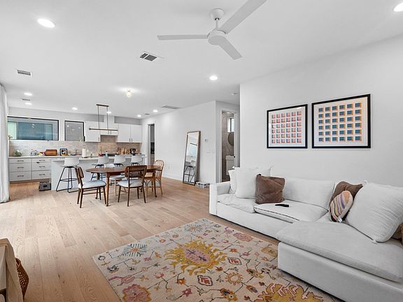 Modern detached 3BD/3.5BA home in vibrant East Austin! This light-filled residence features white oak floors, high ceilings, and a spacious open layout. The kitchen boasts quartz countertops, Bosch appliances, a large island, and a walk-in pantry. Each bedroom has a private en suite bath, including a top-floor primary suite with a walk-in closet and skylit shower. Enjoy a fenced yard, expansive rooftop deck with skyline views, and a 2-car garage. Prime location just minutes from UT, Mueller, Downtown, and top East Austin dining and coffee spots. Available now!