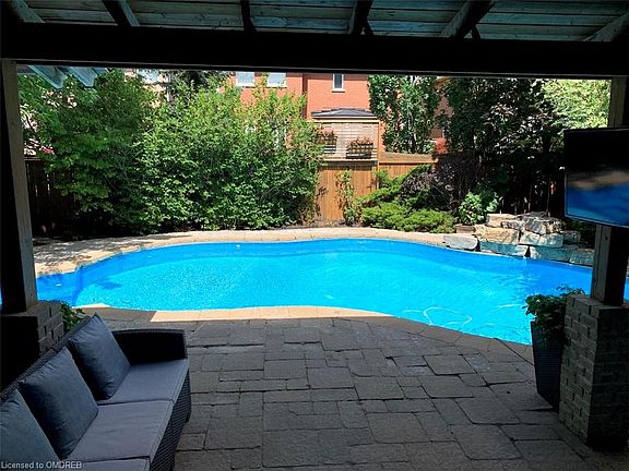 Located on a prestigious street in Lakeshore Woods surrounded by walking trails and parks, this designer showpiece has been beautifully finished from top-to-bottom and effortlessly combines style, elegance and function. The well-designed main level features hardwood floors, den/home office, open concept living/dining room with coffered ceiling, ledgerock feature wall, butler's pantry with prep sink, powder room and convenient laundry room. The sensational kitchen with quartz counters, eye-catching marble backsplash, pot filler, oversized island with breakfast bar, built-in stainless steel appliances and breakfast area with walk-out to patio is open to family room with gas fireplace and custom built-in cabinetry. Relax and unwind in the massive master retreat with two walk-in closets and spa-like five piece ensuite with double sinks and soaker bathtub. The professionally finished basement is perfect for family life and offers laminate floors, huge recreation room with custom bar, built-in wine racks and entertainment console, ledgerock feature walls, fitness room and lots of storage space. Additional details include elegant entrance doors with wrought iron inserts, pot lights, built-in ceiling speakers, updated powder room (2020), solid oak staircase with carpet runner, computer nook on upper level with walk-out to balcony, inside access from two car garage, cedar garden shed, gorgeous landscaping, inground sprinkler and so much more! Incredibly private rear oasis with an inground heated saltwater pool, covered interlock patio and outdoor kitchen with gas cooktop and barbecue is perfect for entertaining outdoors! Sought-after locale close to the lake and Bronte Harbour. A perfect place to call home!